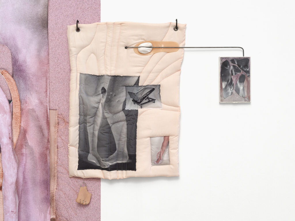 Talon fesse talon sol(literie et appareillage), 69ème Salon de Montrouge, 2026 (photo A.Molle) Literie (taie, extention), 2026 (photo A.Molle)